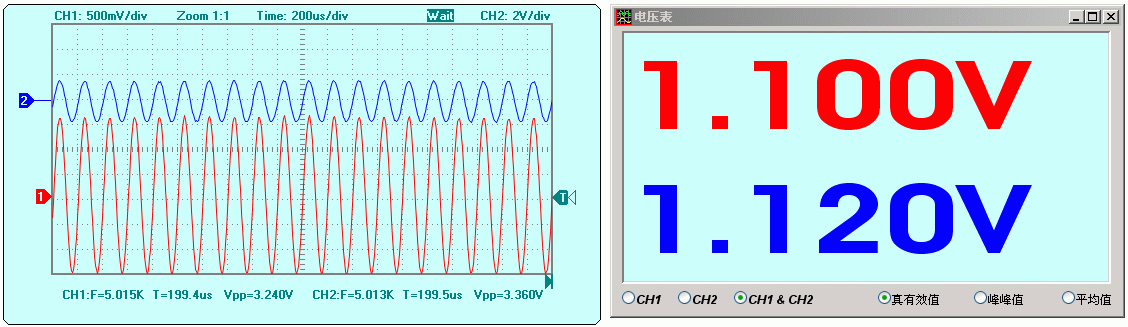 电压表支持单或双通道的真有效值、峰峰值、平均值显示,并且可以大屏幕大字体显示。 真有效值计算公式: [频率计]
