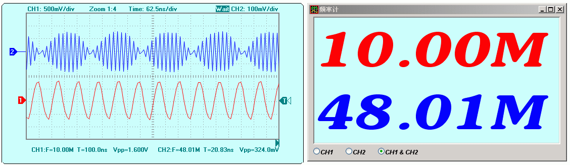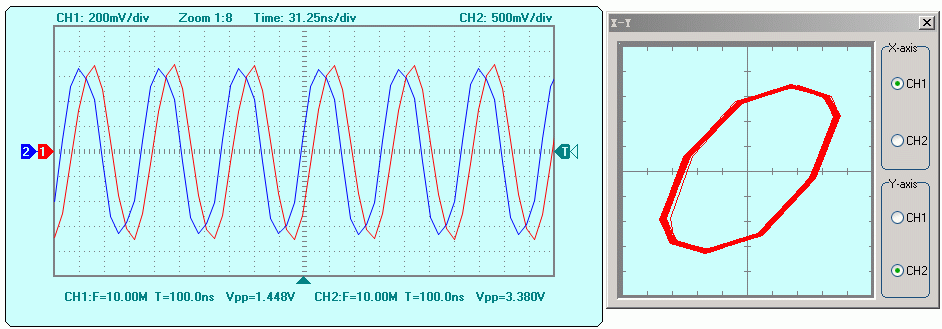 双击示波窗可以在全功能窗口和小窗口模式之间切换,考虑到很多工程师在测量信号的同时,也在用其它软件工作,这时小窗口模式非常有用,只占用一小部分电脑桌面。 [李沙育图形]