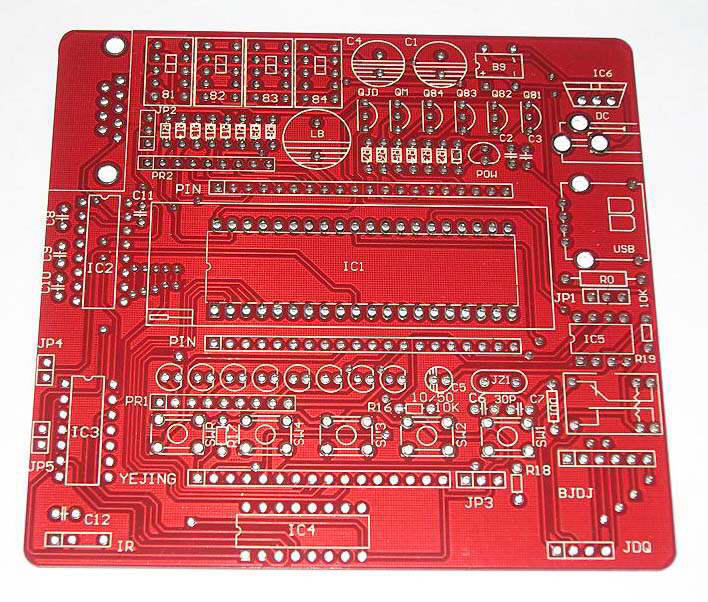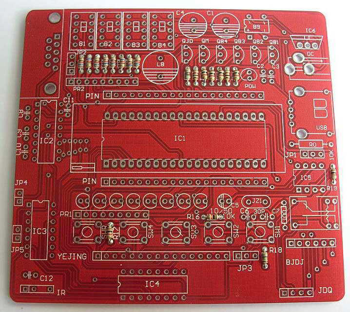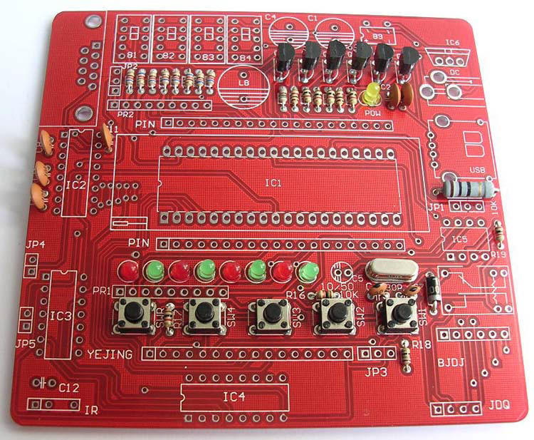 来看看PCB板吧,这块站长给它做成红色的了,布线完全一样,只是颜色不同而已。 |