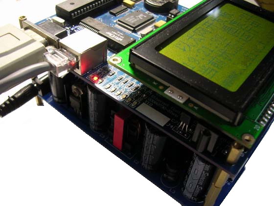 与老产品51NET以太网开发板相比,新的豪华版开发板上的资源丰富不少,板子本身可以完成以太网通讯的同时,还可以利用以太网板上的资源来实时监控通讯情况,也是我们设计该板时为广大工程师方便开发考虑到的问题,您可以通过数码管显示数字,蜂鸣器鸣音,继电器吸合来更直观地给开发者讯息,在保持原有的产品优点基础上,我们又新增了16路继电器光电隔离驱动电路,16路继电器,I2C串行总线EEPROM 24C02,128X64图形液晶接口,红外接收头接口,串行时钟芯片DS1302,